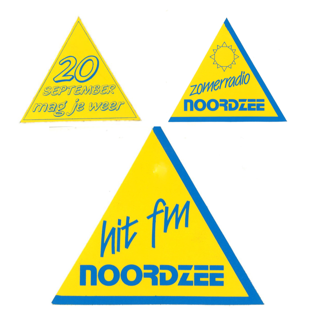 Nieuwe stickers combineerden de toevoeging HitFM, Radio Noordzee en de gele driehoek.
