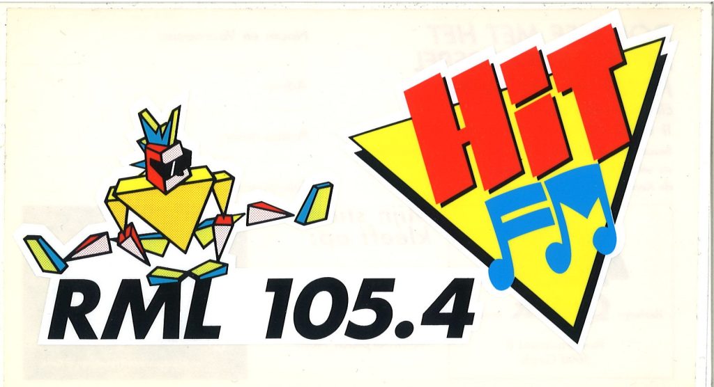 ‘Ik luister’ sticker met zowaar de vermelding HitFM Limburg, plus de gele driehoek achter het Radio Noordzee letterlogo.